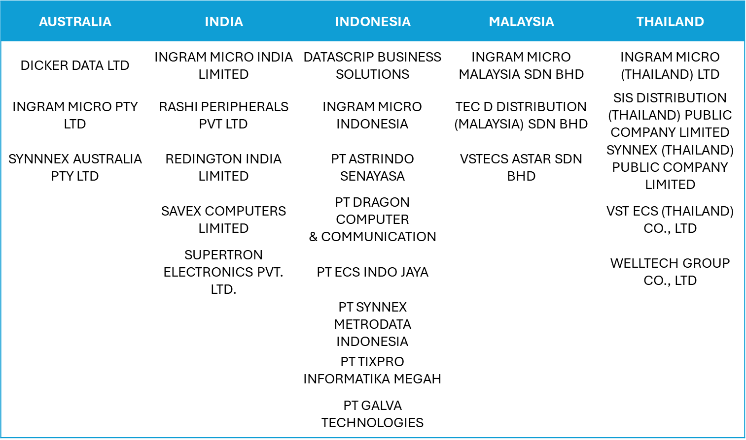 Disclaimer: The distributors listed below are presented in alphabetical order (A-Z) for ease of reference. This listing does not indicate any priority, ranking, or endorsement